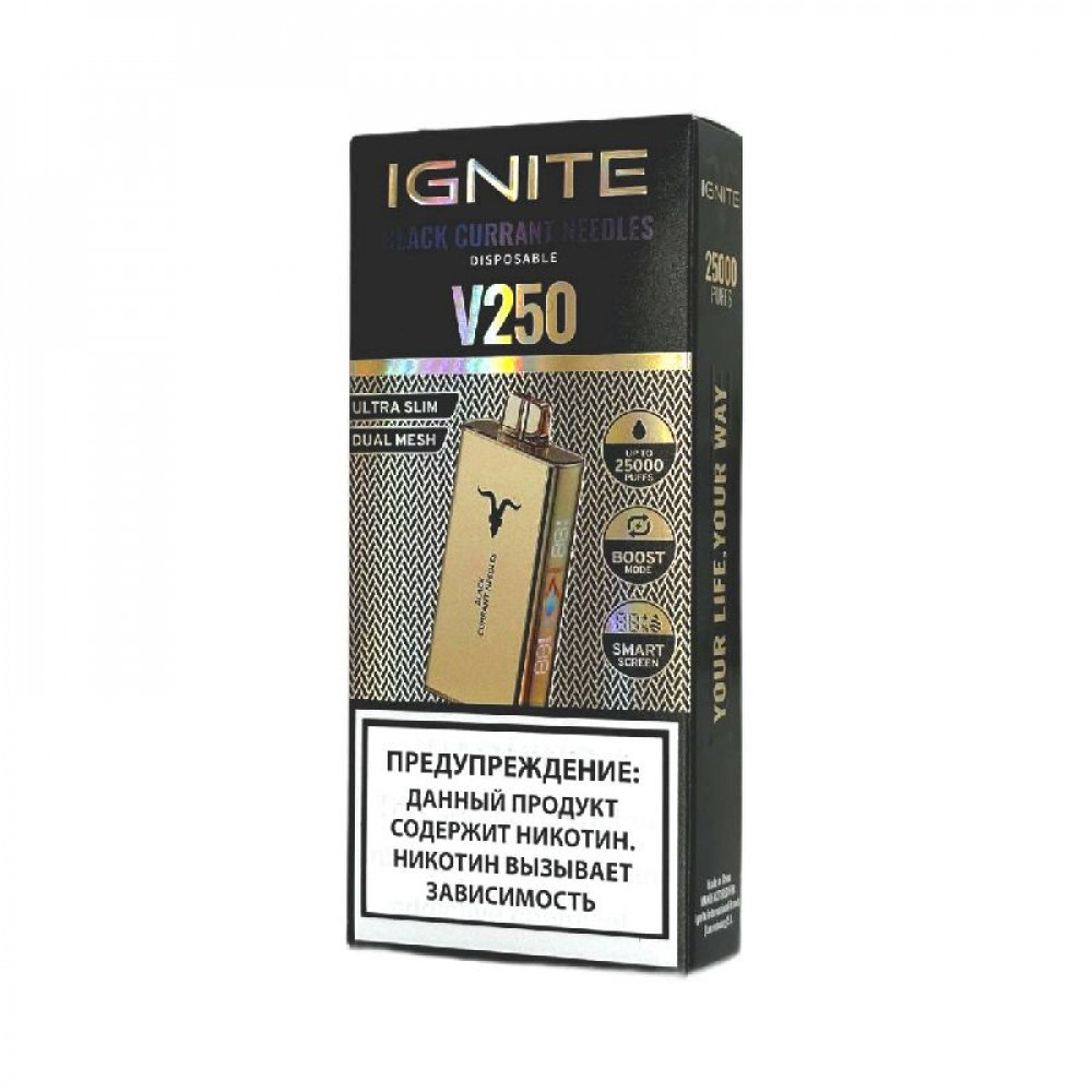 Электронная сигарета Ignite V250 Gold 25000 - Black Currant Needles (Черная смородина хвоя) - купить в Навашино