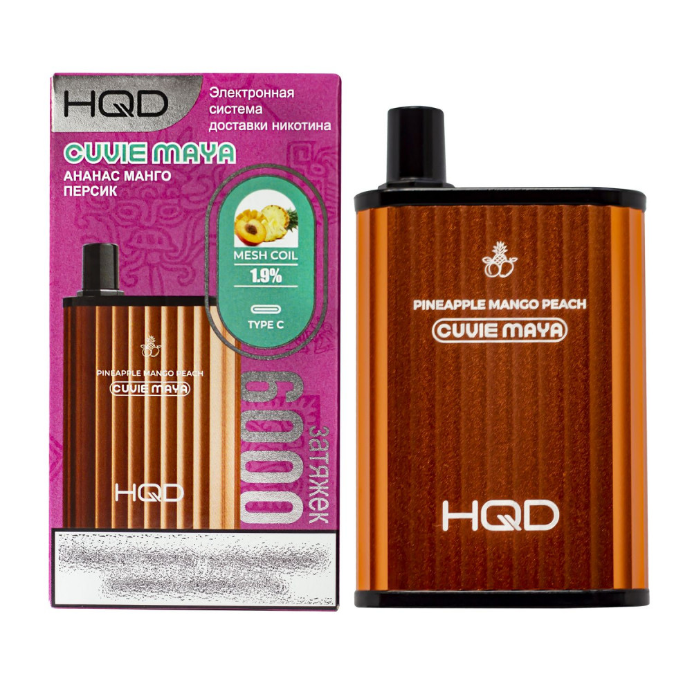 HQD видыCuvie MAYA (Куви Мая) HQD вкусыАнанас Манго Персик HQD количество в блоке5 шт